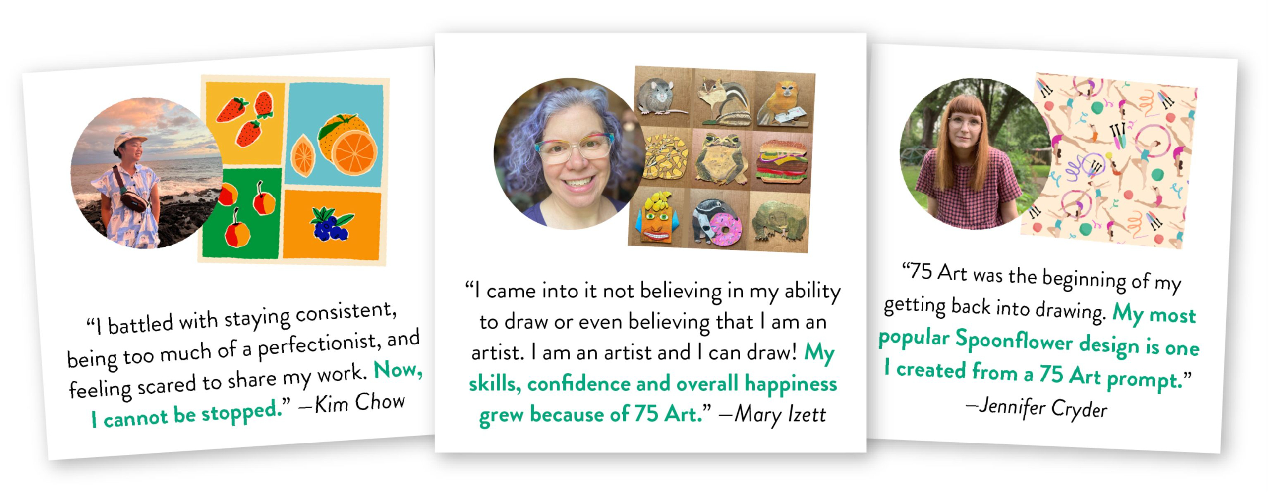 Draw alongside a supportive, private group of artists and support team members for 75 days of celebrating wins, overcoming blocks, and keeping your commitment to show up for yourself.